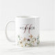 Floral Monogrammed Coffee Mug. This elegant whimsical wildflower monogrammed mug features beautiful hand-painted watercolor blush pink, dusty blue, and sage green pressed flowers with black and pink. Find matching items in the Wildflower Wedding Invitations | Pressed Flowers Collection.