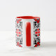 Mug in an Art Deco Moroccan tile pattern based on stylised flowers and leaves - deep Chinese red with classic black and white, accented with silver grey / grey