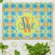 Custom mosaic featuring orange and blue flowers created using a tiling effect from an original artwork of SW Designs.