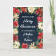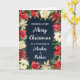 Merry Christmas for mother and father card with rustic watercolor flowers and navy blue background.