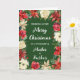 Merry Christmas for mother and father card with rustic watercolor flowers and forest green background.