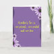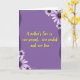 Designed with a deep purple background, this card centers on a tender Mother’s Day message that feels like it’s speaking softly to someone you love ❤️. The main quote, “A mother’s love is ever present... ever needed and ever true,” sits prominently in the middle in bright yellow lettering that stands out clearly against the dark field. Decorative flower clusters frame the words in the top-right and bottom-left corners, like gentle bouquets leaning in toward the message. Each bloom has multi-petaled shapes with soft lavender-to-white shading and dark, detailed centers, adding a calm, affectionate tone 🌼. Along the edges, darker purple wave-like forms curve inward, giving the layout a cozy, wrapped-around feeling. A fine dotted white line traces near these curved shapes, adding a light border detail without overpowering the center text. The top-right bouquet shows several lavender-and-white flowers with dark centers nestled against the purple corner.