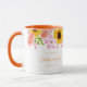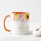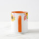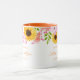 This floral mug has sunflowers, poppies and wild roses with leaves around the top edge of the mug over a white background. Cantaloupe save the date text waiting for you to personalise. Sample interior shown is soft orange. Choose your colour interior to suit your taste. Customise this mug or buy as designed.