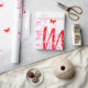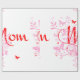 Elegant wrapping paper for mum's gifts. A pink floral art graphic design with red butterflies and the word MOM written in a red script font. Give mum her special Mother's Day gift, birthday gift, anniversary gift, Christmas gift wrapped in this beautiful wrapping paper made just for her.