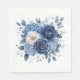 Party paper napkins are shown in the white luncheon size with a watercolor print of a pretty blue hydrangea floral mix.