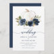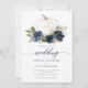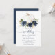 Floral Navy Blue Pumpkin Fall Greenery Wedding Invitation