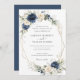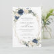 Floral Navy Blue White Greenery Gold Wedding Invitation