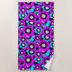 Floral Neon Pattern Purple and Turquoise Flowers Beach Towel