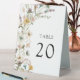 Floral Number Table Tent Sign. Chic & Stylish, this beautiful floral table number sign features stunning hand-painted watercolor blush pink, dusty blue, and yellow delicate pressed vintage wildflowers with sage green botanicals arranged as a lovely frame. Find matching products in the Elegant Pastel Watercolor Wildflower Wedding Collection.