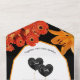 Black and orange, the colours of Halloween! This gerbera and lily design is bold and striking featuring two black heart shaped balloons bearing the bride and grooms names.
