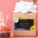 Make a lasting impression with this elegant and modern product label design featuring a cute daisy and coreopsis flower on an orange and blue glitter frame with a shimmery fine gold decor and a black background.