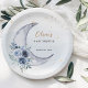Watercolor Blue Floral We are Over The Moon Baby Shower Paper Plates.
