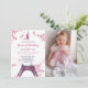 Floral Paris Eiffel Tower 1st Birthday Party Photo Invitation