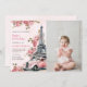 Floral Paris Eiffel Tower 1st Birthday Photo Invitation