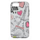 Floral Paris Eiffel Tower black pink and grey Case-Mate iPhone Case