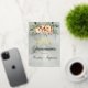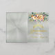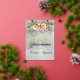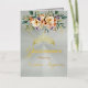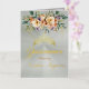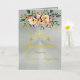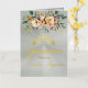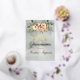 Spring Floral bouquet and gold tiara on a pastel sage green background embellish the front of this folded card invite. The inside features a placeholder for a photo and the details of the event.
