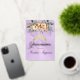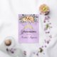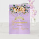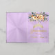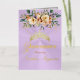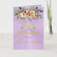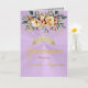 Spring Floral bouquet and gold tiara on a pastel lavender background embellish the front of this folded card invite. The inside features a placeholder for a photo and the details of the event.