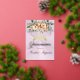 Spring Floral bouquet and gold tiara on a pastel pink background embellish the front of this folded card invite. The inside features a placeholder for a photo and the details of the event.