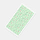 The image is a seamless pattern of delicate light green branches with small pink flowers. The background is a transparent with small white circles, creating a subtle and airy feel. The design is simple and elegant. The repeating pattern adds a sense of continuity and rhythm to the image. The overall effect is calming and serene, evoking a sense of tranquillity and beauty.