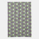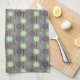 Green kitchen towel with a floral pattern of alliums in dark purple, lavender, and white. Alliums are flowering plants that include the cultivated onion, garlic, scallion, shallot, leeks and more.
