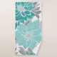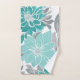 Floral Pattern, Aqua, Teal, Turquoise and Grey sea Bath Towel Set