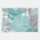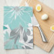 Floral Pattern, Aqua, Teal, Turquoise and Grey Tea Towel