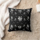 This double sided throw pillow features a busy silver flower and leaf design on a black background. Matching accessories available. Contains A.I.