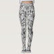 Floral pattern black and white retro striped leggings