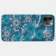 A vibrant phone case adorned with a floral pattern featuring large teal and blue flowers, with delicate pink accents.