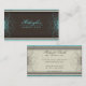 Elegant and Fancy Teal Blue, Brown and Cream Retro Business Cards. Featuring a vintage floral pattern. With grunge effects.