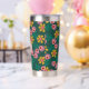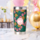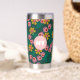 Custom monogran green cute modern insulated bottle or tumbler. Colourful green floral pattern with small flowers for mothers, moms, women, girls, friends . Add initials or name on this elegant tumbler. Gift idea for women, girls, friends, mothers, for mother's day, birthdays, christmas, holidays