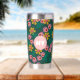 Floral pattern green cute monogram Water Bottle Insulated Tumbler