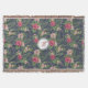 Personalised throw blanket: Classy and fresh seamless pattern composed with red hibiscus flowers and leaves on dark background. Custom Monogram included on white round shape.