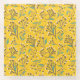 Seamless floral pattern with delicate branches, blue-green leaves, and pink buds on a vibrant yellow background, creating a cheerful, lively tone.