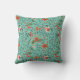 An aquamarine coloured square throw pillow with a pretty orange-red and peach floral with navy and green leaves. Personalise by adding you name and monogram to the cherry tomato red rounded octagon badge. This is part of the Aquamarine Floral Cherry Tomato Red Monogram Collection.