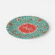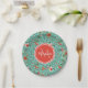 Floral Pattern in Teal and Orange and Red Monogram Paper Plate