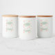Cute botanical pastel orange, blue, sage green pattern personalised kitchen labels with script name and text template.