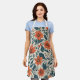 This charming floral design apron is perfect for any cooking or gardening lover, it features a vibrant pattern of large orange flowers with dark centers, small red buds, and leaves. This apron is not only functional, but also adds a touch of elegance and style to your daily activities.