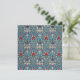 Intricate floral pattern with red, cream, and green leaves on a blue background. Symmetrical design evokes a classic, elegant, and ornate feel.