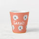 Floral pattern Orange custom name Latte Mug. Add the desired name. Cute gift for a friend or relative or even for yourself. More colours and styles available. Ideal as a birthday gift or for every occasion. Name can be also changed to Mum, sister etc. Click Personalise this template ‘Details’ to personalise further.