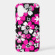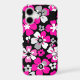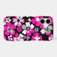 Striking Pink, Grey, and White flowers on a black background, floral patterned iPhone case.