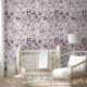 Retro Floral Pattern Dark Plum Wallpaper. The design shows a blend of dark plum flowers in an all-over print, set against a plain white background. You can change the background colour by clicking Edit This Design and choosing from the colour palette.