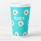 Floral pattern Teal Blue custom name Latte Mug. Add the desired name. Cute gift for a friend or relative or even for yourself. More colours and styles available. Ideal as a birthday gift or for every occasion. Name can be also changed to Mum, sister etc. Click Personalise this template ‘Details’ to personalise further.