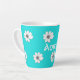 Floral pattern Teal Blue custom name Latte Mug. Add the desired name. Cute gift for a friend or relative or even for yourself. More colours and styles available. Ideal as a birthday gift or for every occasion. Name can be also changed to Mum, sister etc. Click Personalise this template ‘Details’ to personalise further.