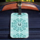 Floral Pattern, Teal Blue Initial Luggage Tag