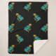 Floral Pattern Turquoise Coral Green on Black Sherpa Blanket