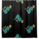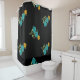 Floral Pattern Turquoise Coral Green on Black Shower Curtain