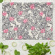 Floral pattern with cartoon birds tea towel