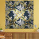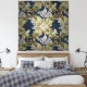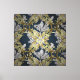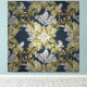 Floral Pattern with Gold Elements Blue Background Canvas Print