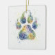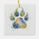 Honor your beloved furry companion this holiday season with an elegant double-sided design featuring a vibrant floral paw print and your favorite personal photo. The artistic blue watercolor hydrangeas and botanical accents create a sophisticated look that pairs beautifully with traditional or modern holiday decor. This charming keepsake is a thoughtful way to celebrate a new puppy or remember a cherished pet for years to come.